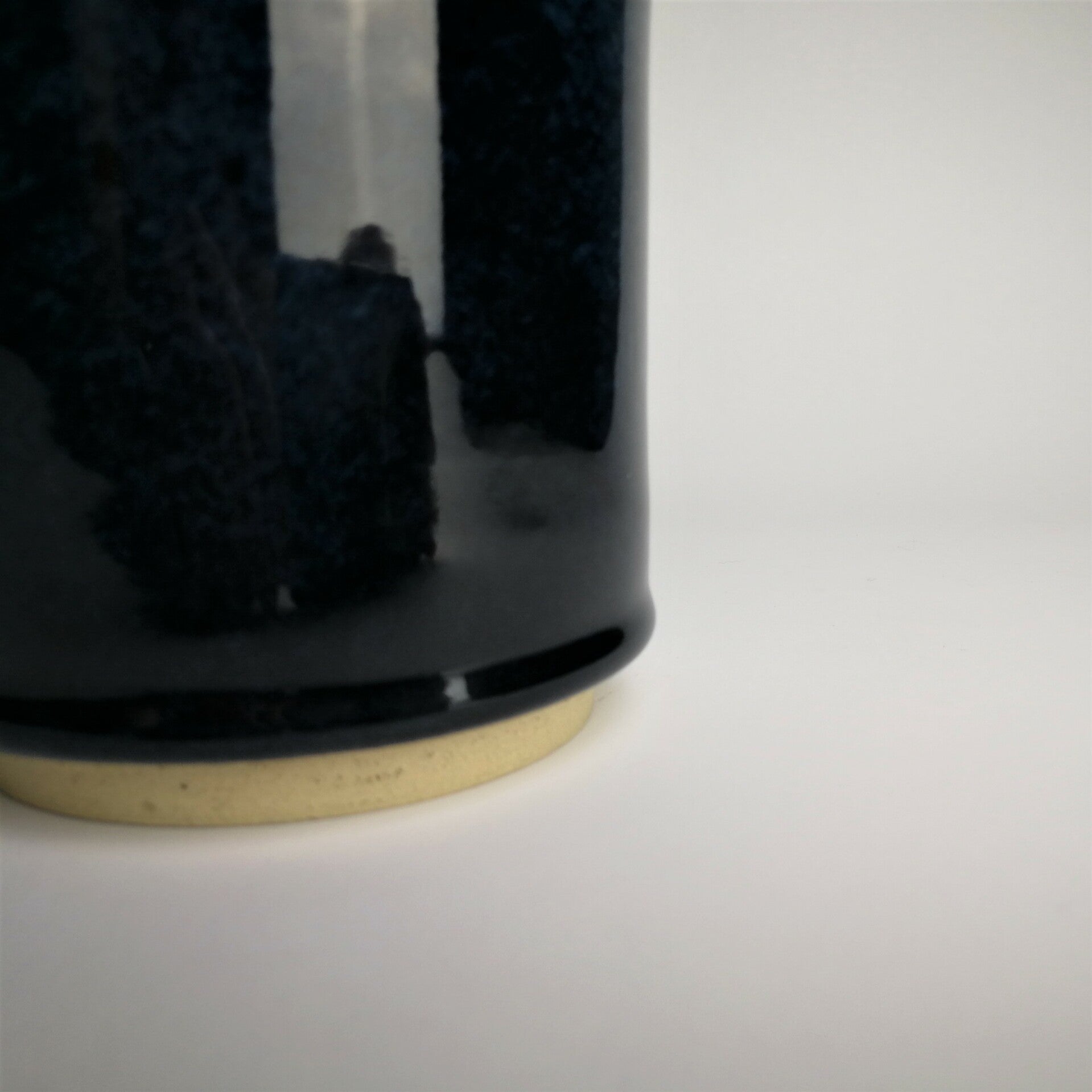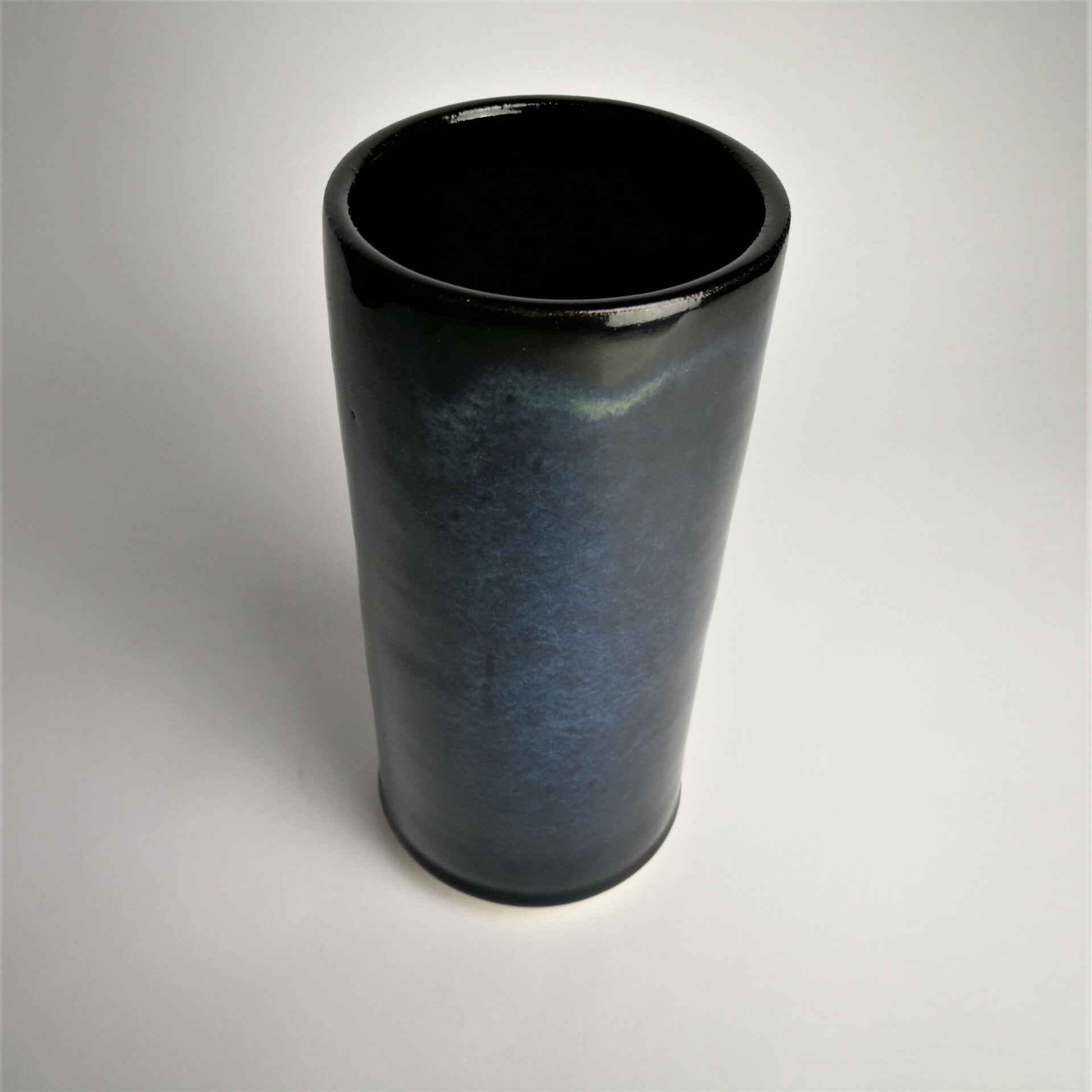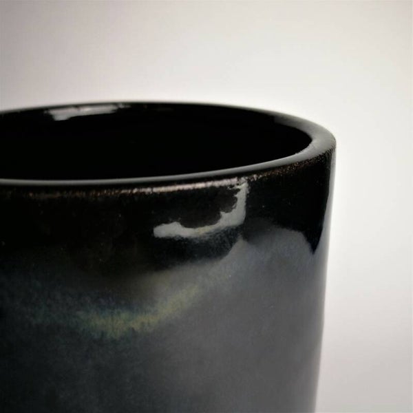 recupklei, zwart geglazuurd met kleuraccenten in blauw