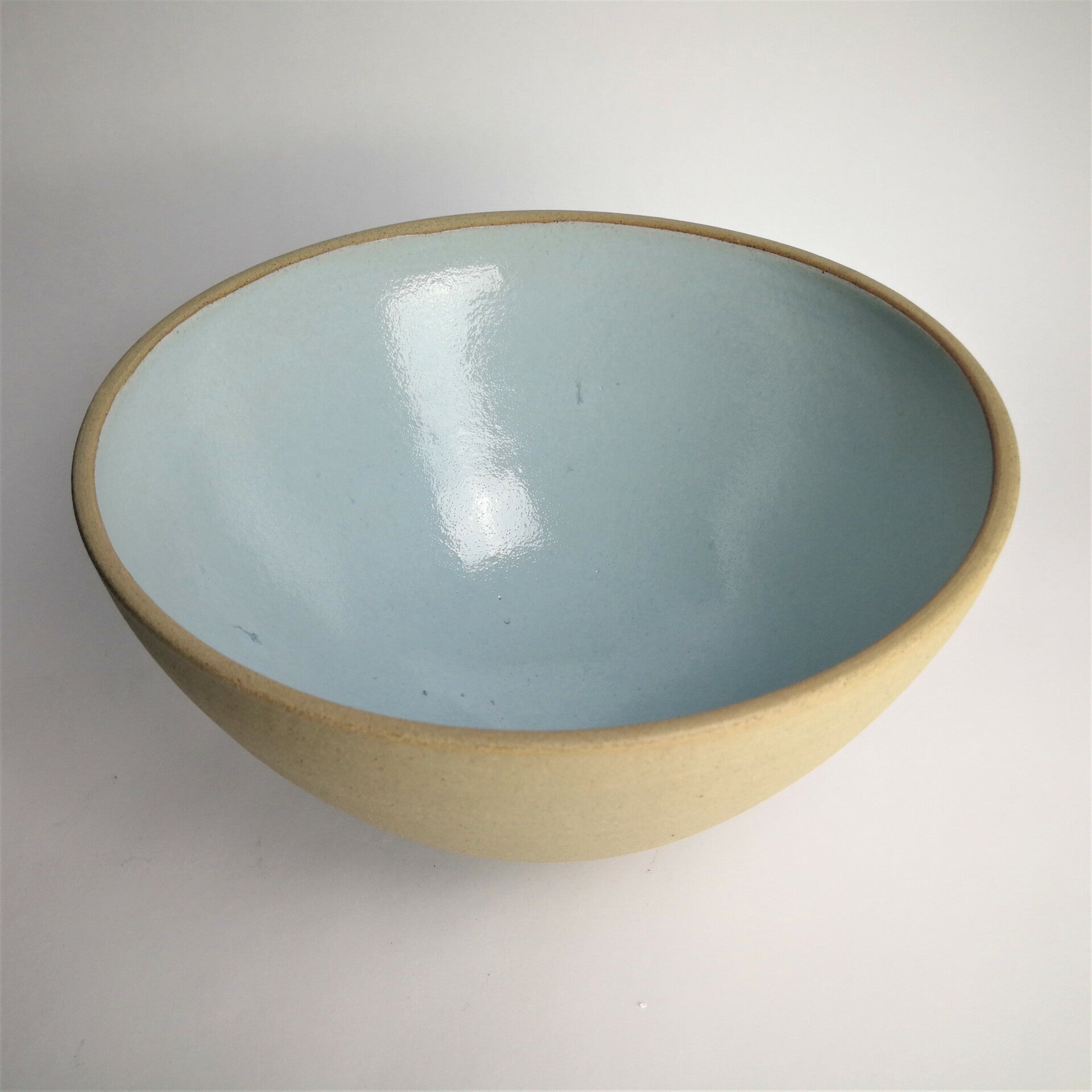 okerklei, lichtblauw geglazuurd binnenzijde